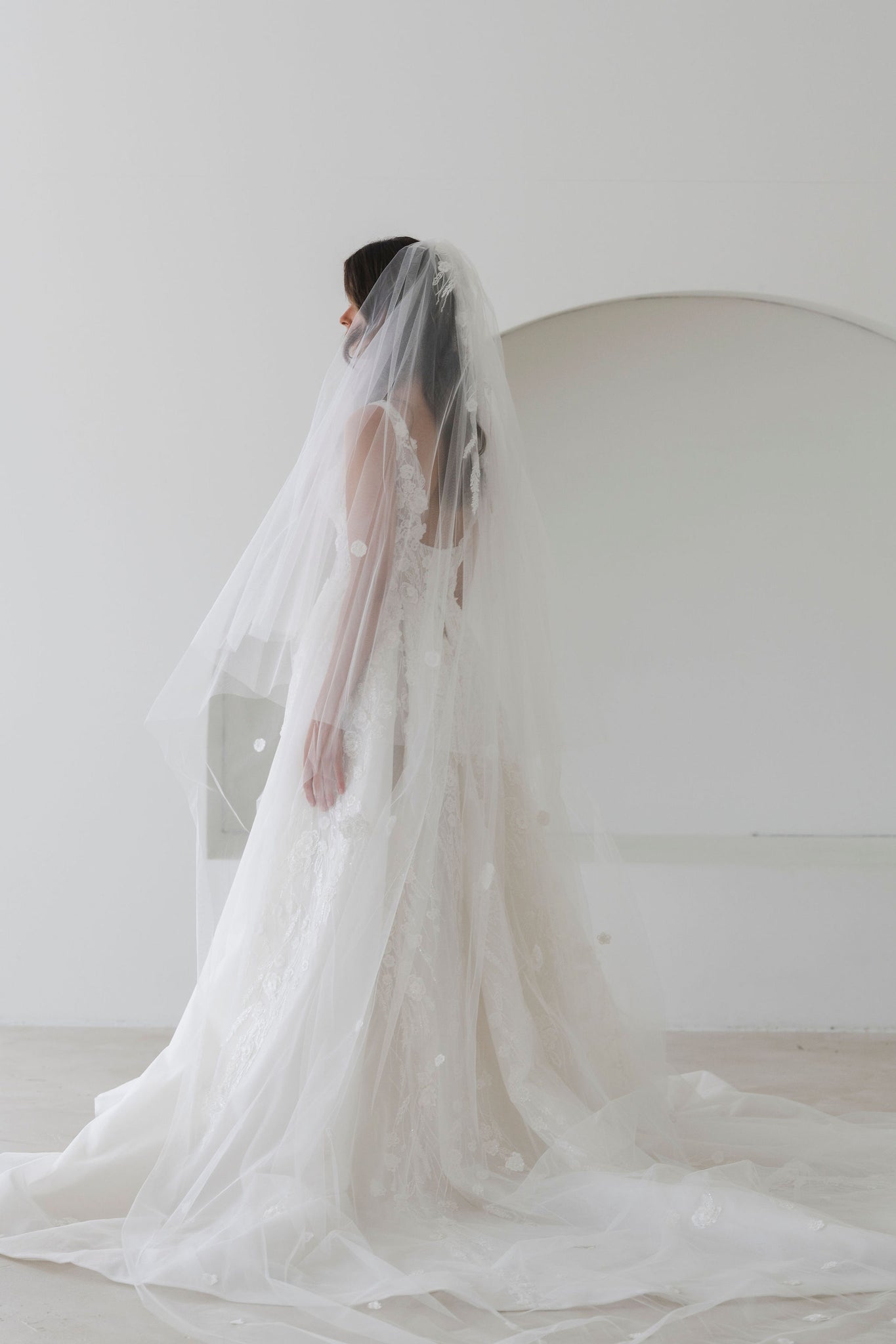Designed by Le Lee Studio, this lace wedding veil pairs perfectly with their Aspen gown as the matching 3D lace compliments this gorgeous gown.